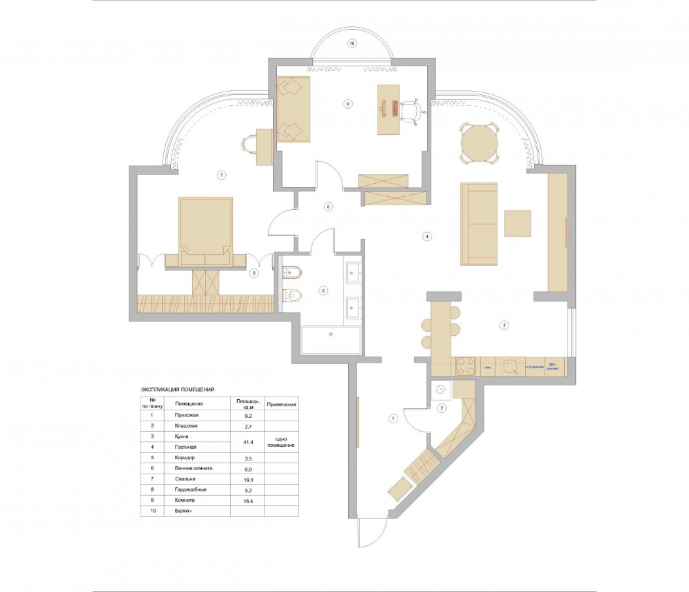 Трехкомнатная, площадью 105,7 м, с двумя спальнями,